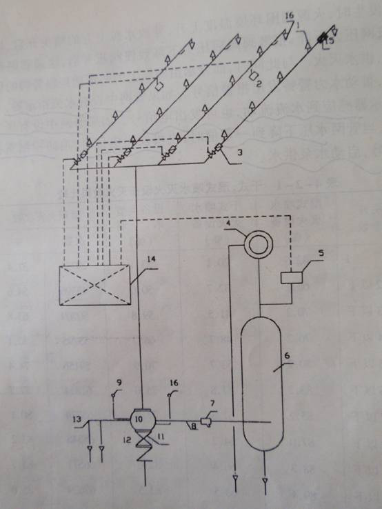 1闭式喷头2火灾探测器3水流指示器4水力警铃5压力开关6延迟器7过滤器8截止阀9压力表10湿式报警阀11闸阀12截止阀13放水阀14火灾自动报警控制器15电磁阀和末端实验装置16排水管
